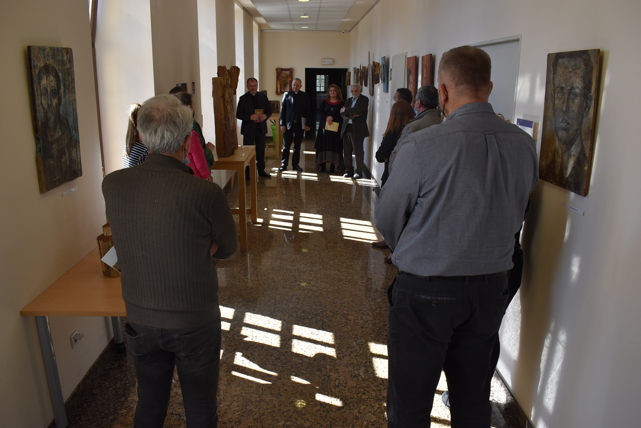 O bogatom hodu izložbe po Hrvatskoj govorio je rektor Nacionalnog svetišta sv. Josipa u Karlovcu Antun Sente ml. Istaknuo je da je, unatoč korona okolnostima, ta izložba tijekom godine bila postavljena u sedam hrvatskih sredina. Povjesničar umjetnosti Stanko Špoljarić približio je okupljenima osebujan autoričin slikarski i kiparski izričaj. Izložbu je otvorio rektor Hrvatskoga katoličkog sveučilišta Željko Tanjić rekavši da je radostan što se u akademskim prostorima ustanove koju vodi otvara baš likovna izložba. Jer su, istaknuo je, u obilju javnih sadržaja koji se ostvaruju na HKS-u, izložbe ipak najrjeđe. S obzirom na tematiku – susret s umjetninama Karin Grenc – rektor Tanjić je nazvao malom duhovnom obnovom.